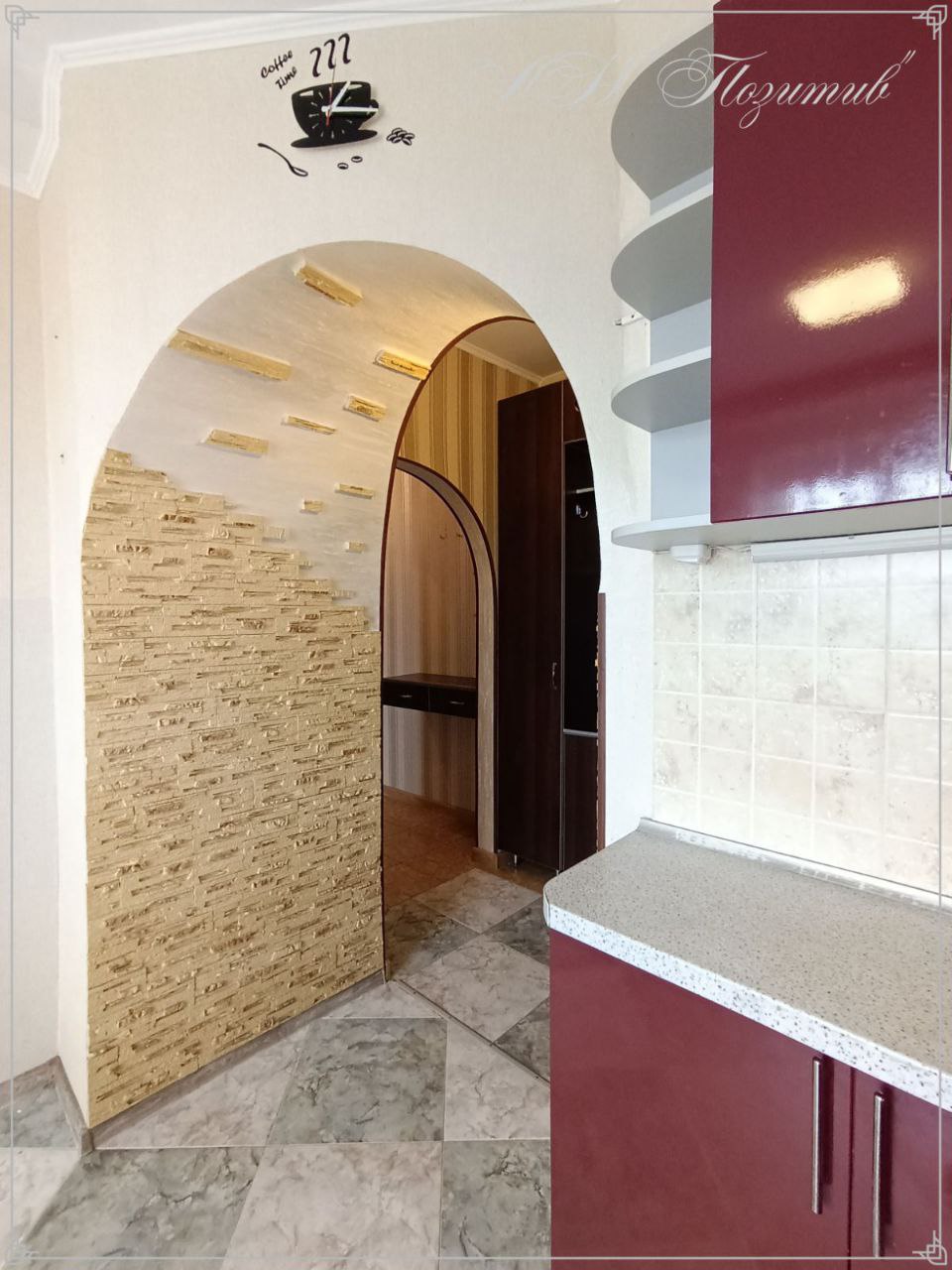 В квартирі виконаний ремон: вирівняні стелі та стіни, на підлозі кахельна плитка та ламінат, вікна та балкони мають пластикові рами, поміняні усі комунікації, встановлені лічильники.