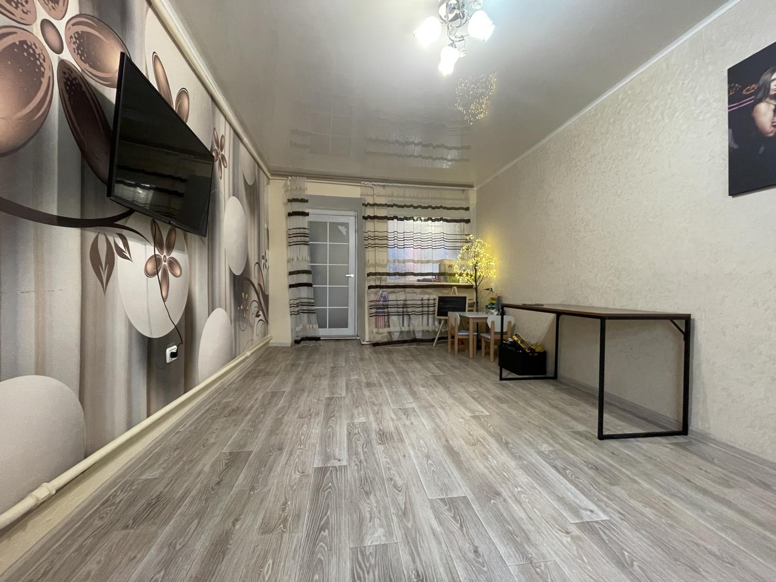 В квартире сделан качественный ремонт, стены и потолки шпаклёванные, в одной из комнат натяжной потолок. Новые межкомнатные двери. Трубы пластиковые. Покрытие пола – линолеум и плитка.