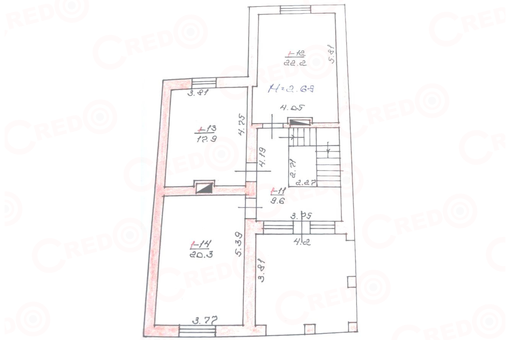 - висота стін - 2.95м