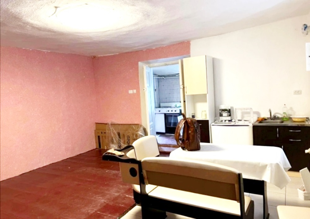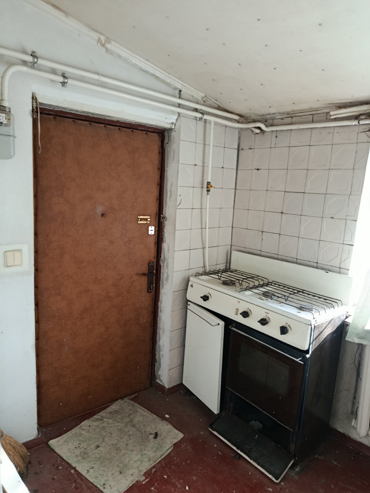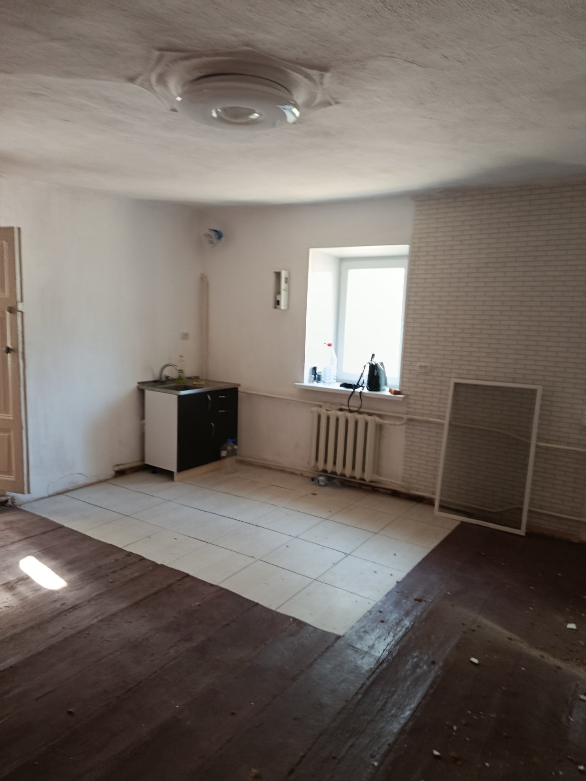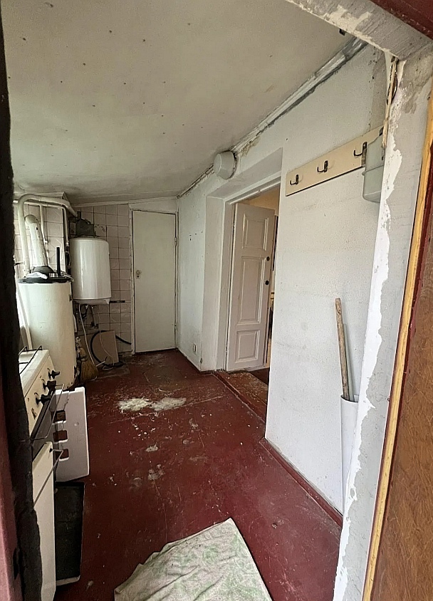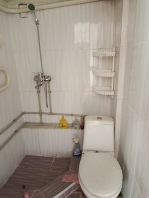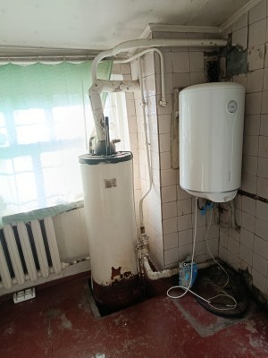 В квартирі велика квадратна кімната,зручний суміжний санвузол з душовою кабінкоюю.
