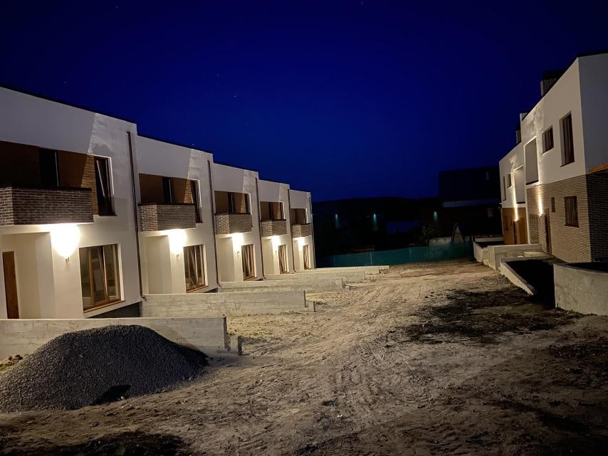 Оснащені відкритою терасою – це повноцінний третій поверх під відкритим небом. На терасі можна створювати лаунж-зону для відпочинку, занять спортом, проведення свят чи інших заходів. Важливо: У кожному будинку знаходиться внутрішня бетонна перегородка.