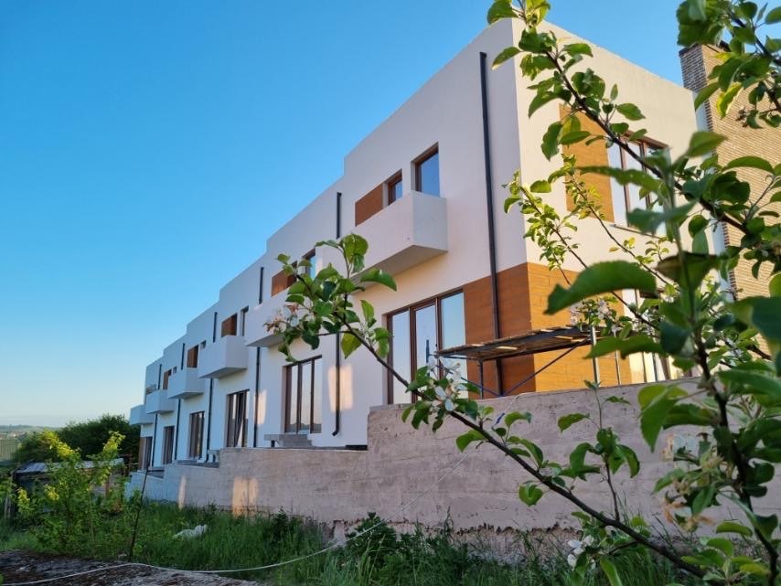 Площа: 142,6 м2, ділянка: 0,0150 га. Будинок відрізняється продуманим інтер’єром: три балкони, високі стелі та панорамні вікна із чудовим краєвидом на місто. Є подвір’я та вільна прибудинкова зона, яка засаджується зеленим газоном, чагарниками і деревами. Котеджі забезпечені безперервною подачею води, газу та електроенергії.