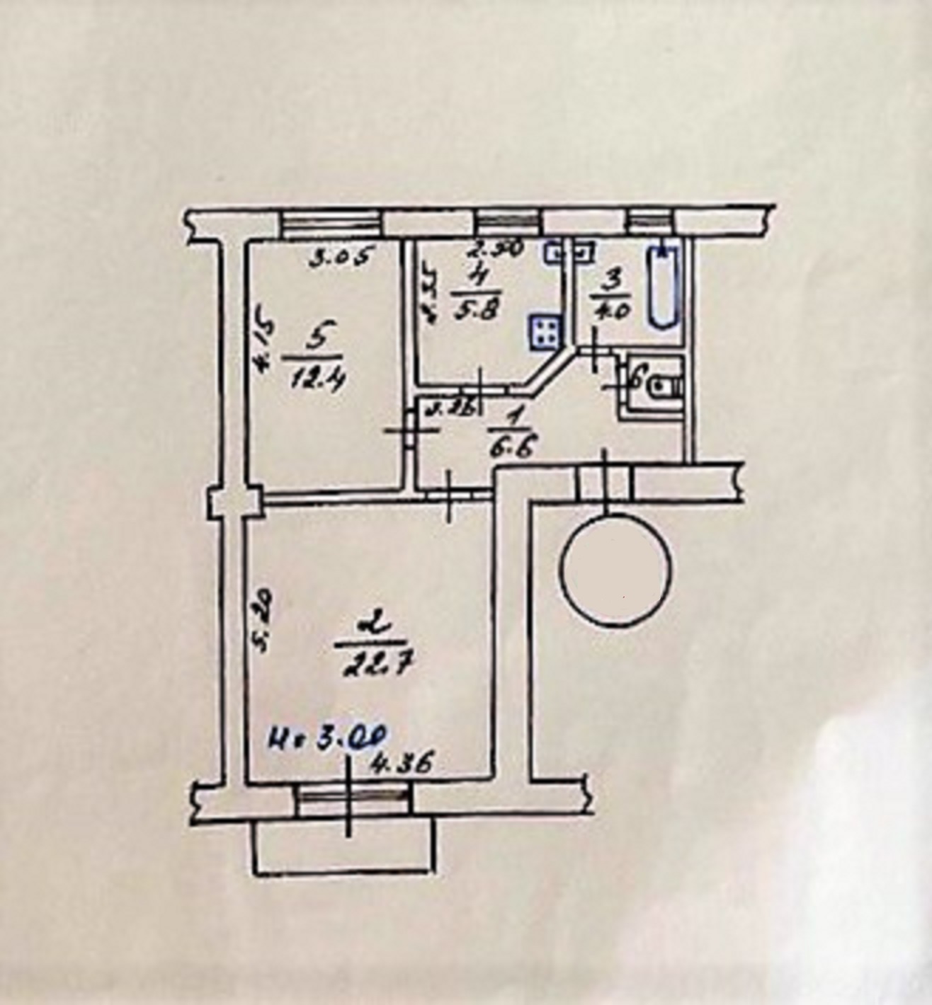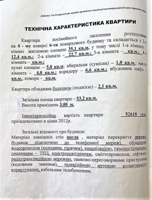 Загальна площа: 53,2 кв.м: окрема кухня - 5,8 кв.м, дві ізольовані кімнати, суміжний санвузол, передпокій, балкон.