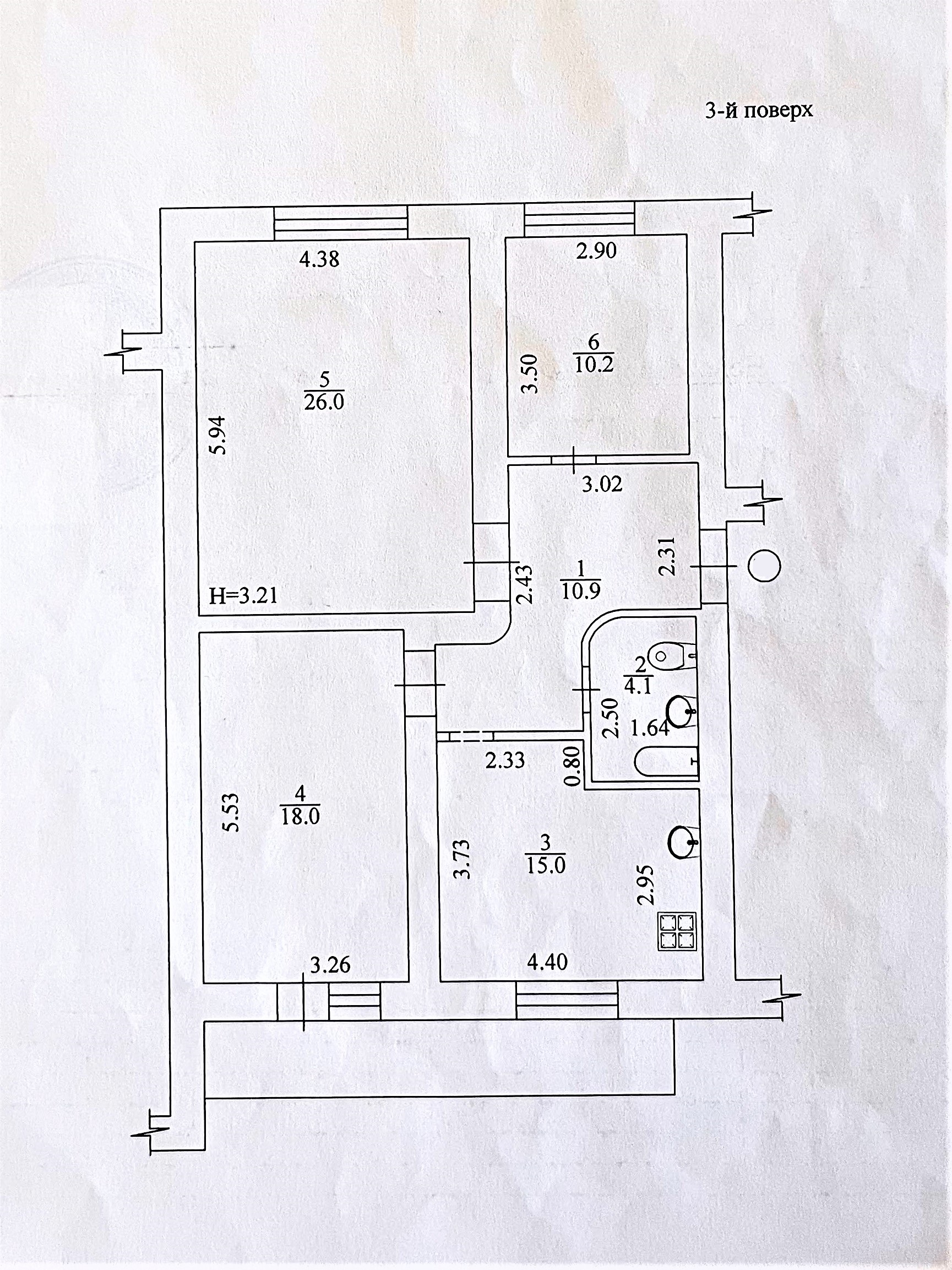 3-й поверх 4-поверхового цегляного будинку. Перекриття - дерево. Висота стелі - 3,2 м.