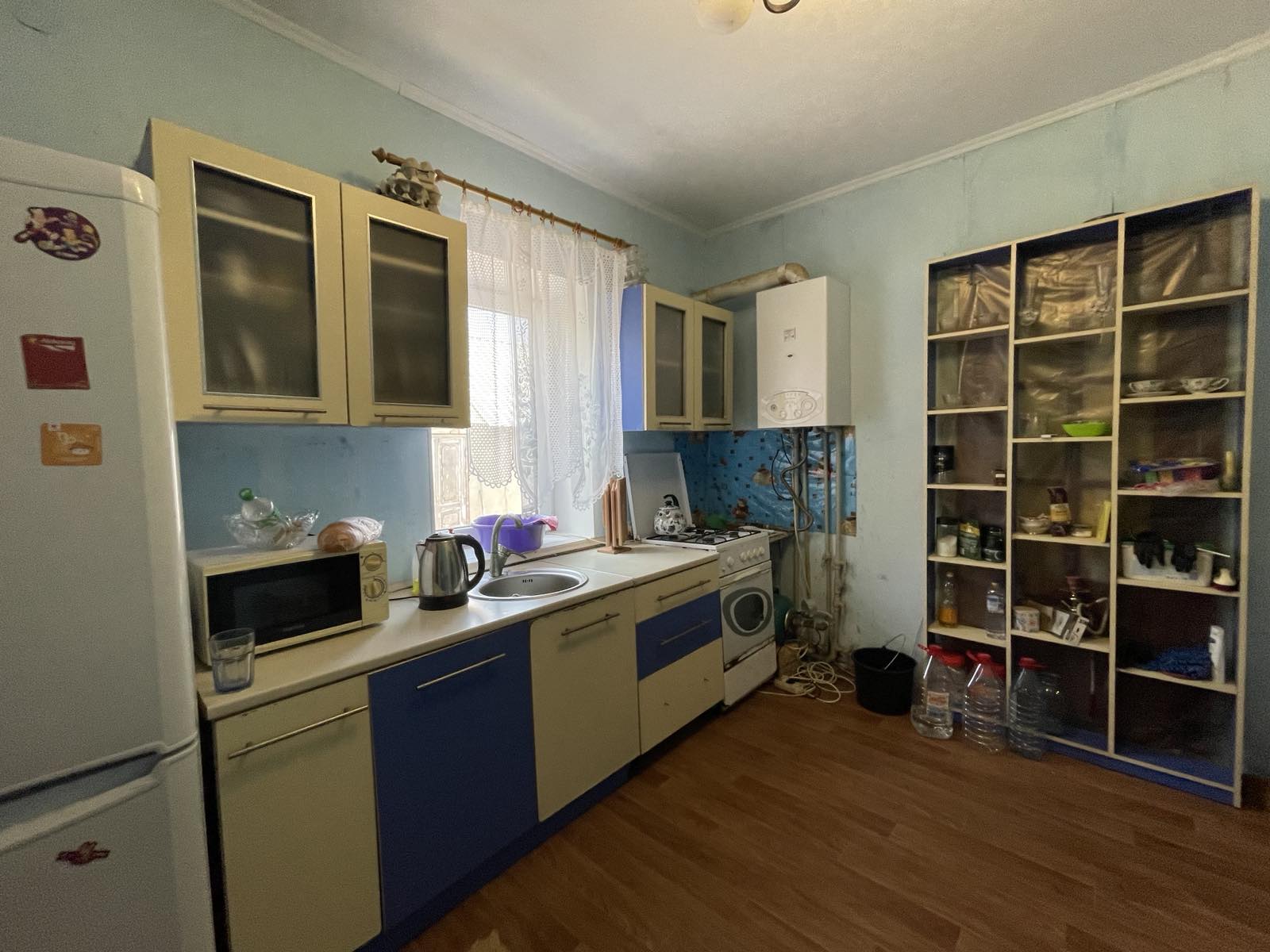 Отопление и подогрев воды – двухконтурный газовый котел. Трубы в доме пластиковые.