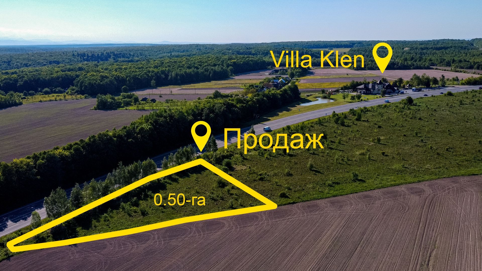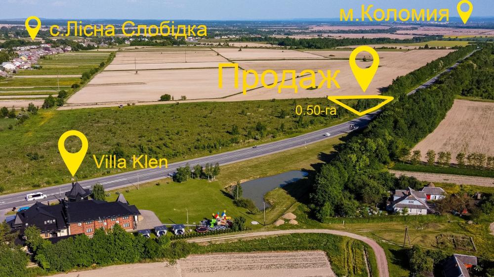 Продається земельна ділянка біля дороги центральної дороги Коломия-Івано-Франківськ у с. Лісна Слобідка, Коломийського району (на межі із с. Раківчик).