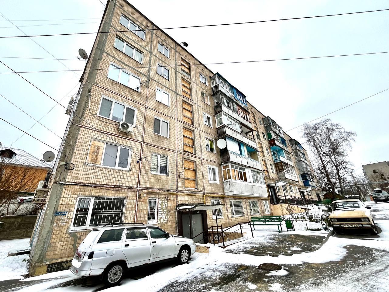Стан - потребує кометичного ремонту. Був приліт, але пошкодження незначне. Зовні полагодили. Вікна за потреби замінили. Потребує полагоження стіни зсередини.