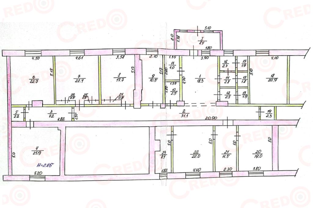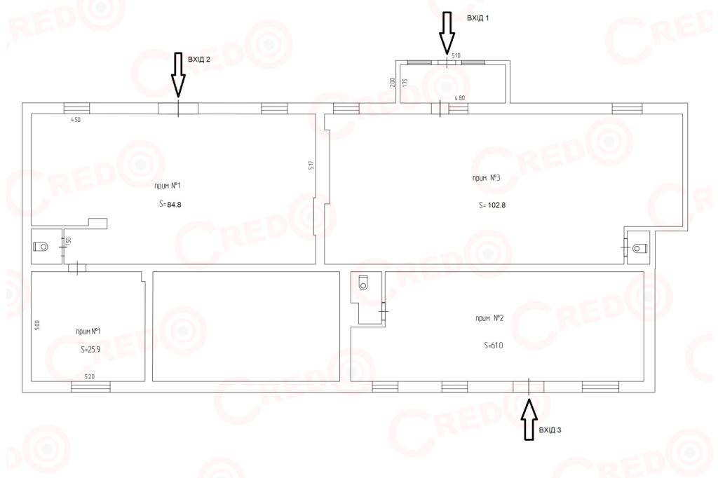 Приміщення має зручне планування, стіни дуже легко демонтувати, що дасть можливість отримати великі зали і зробити три окремих входи (план додаємо).