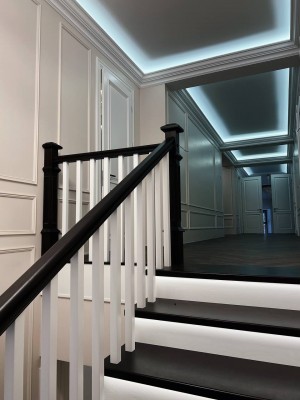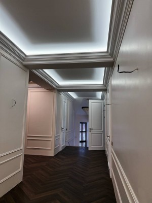 Складається з 4 житлових кімнат, кухня, вітальні, 4-х санвузлів, лазні, кінотеатру, гаража та великої кількості допоміжних приміщеннь. Всі приміщення дуже просторі та світлі. Всередині виконаний якісний та дорогий ремонт в неокласичному стилі, залишилося тільки встановити меблі.