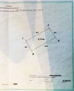 Площа ділянки: 15 сот