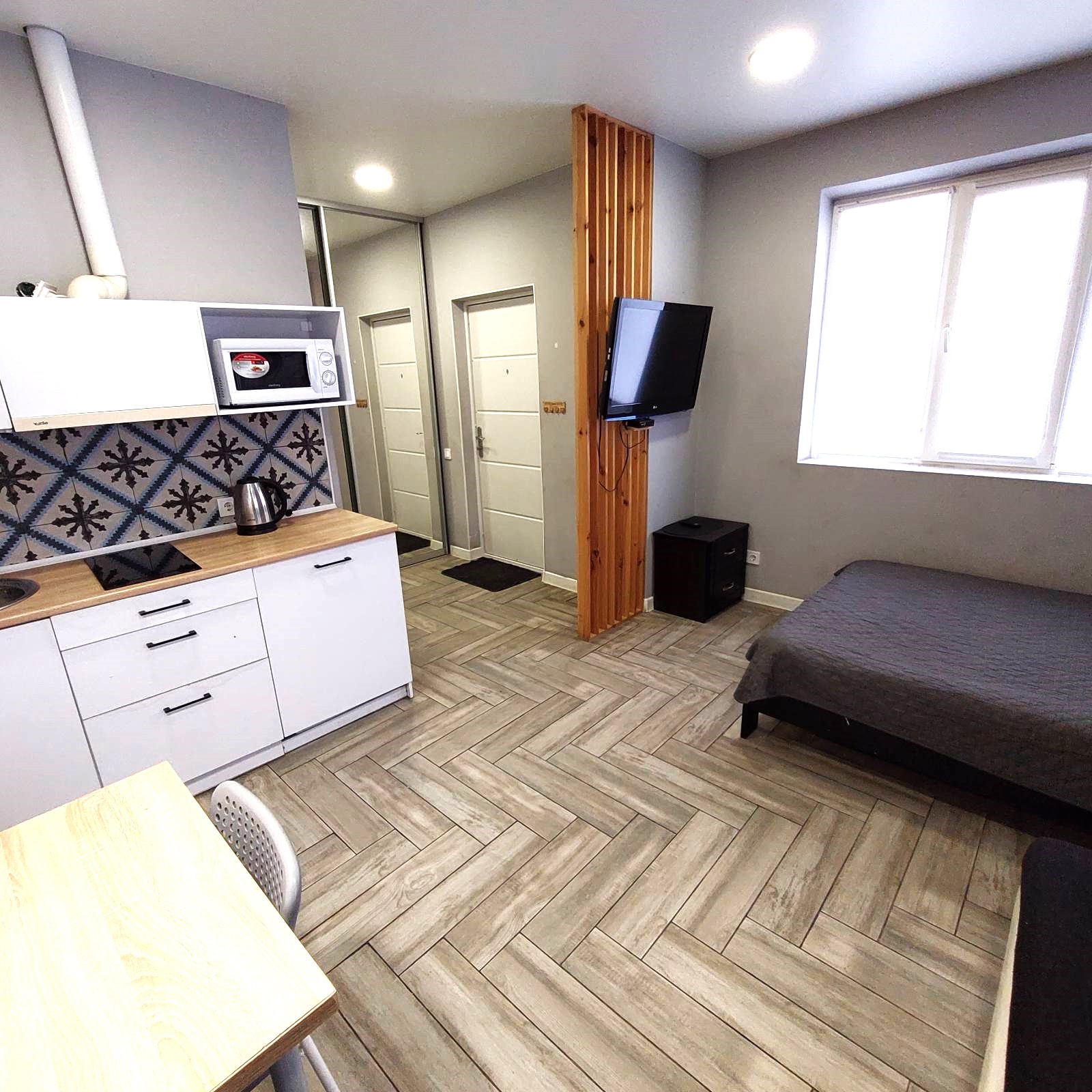 Зручне розташування, до станції метро Гагаріна - 15 хвилин пішки. Парк Стрілка - 5 хвилин. Поряд вся інфраструктура (супермаркет, відділення Нової Пошти, кафе, ринок).