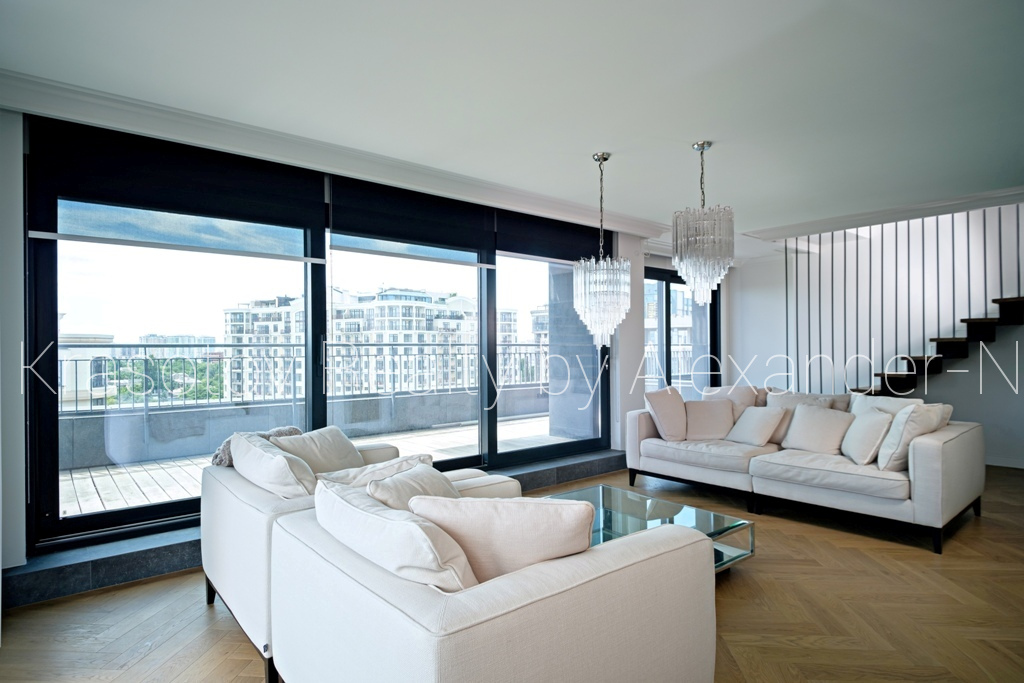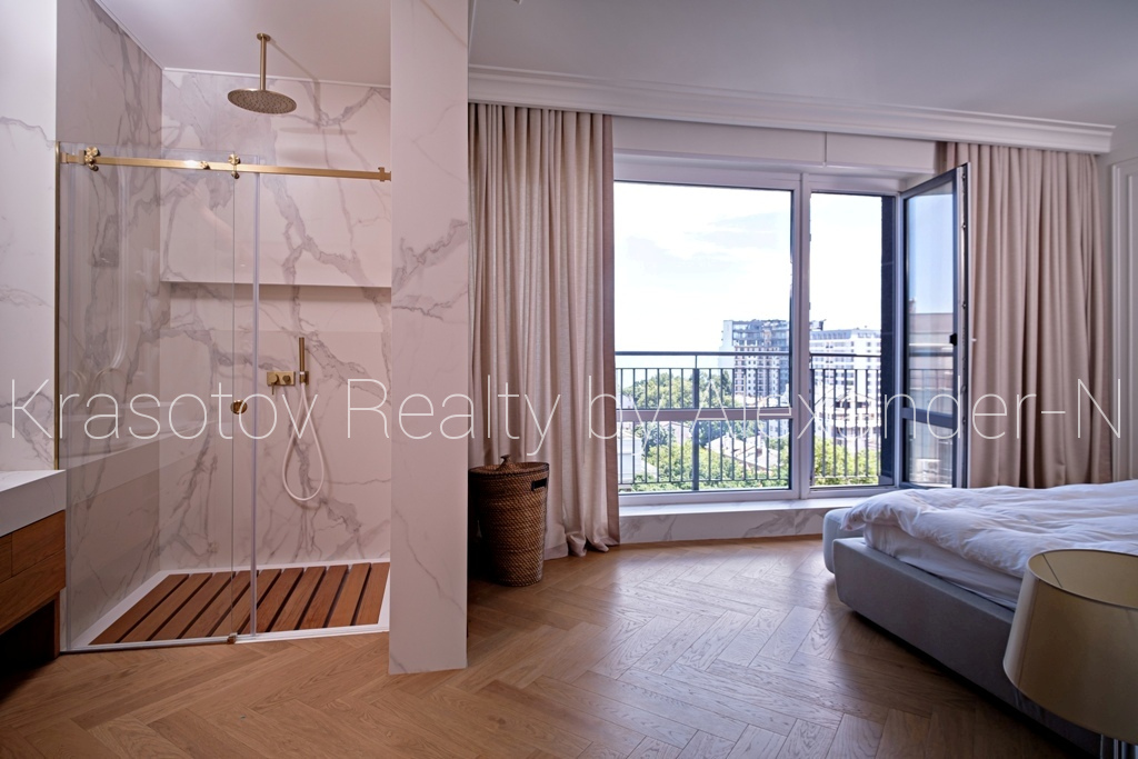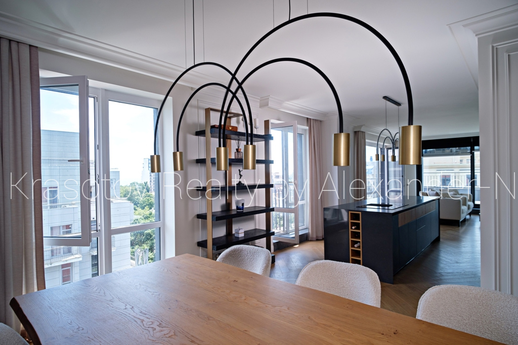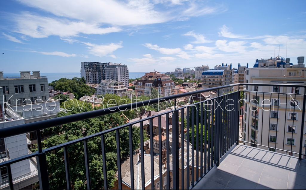 Отрадная / Французский бульвар, продам шикарную квартиру-пентхаус, расположенную на 11 и 12 этажах в новом малоквартирном клубном доме с бассейном ЖК «Ясная Поляна-2», общая площадь 175 кв.м, потрясающая гостиная с выходами на террасу, невероятно удобная кухня-столовая открытого типа с островной зоной на первом этаже и две спальни (родительская и детская) на втором, 4 панорамных балкона и терраса, 2 ванных комнаты, несколько гардеробных, спальня с личной ванной и душевой, шикарный вид на море и город, в квартире сделан дорогостоящий ремонт высокого класса, современный авторский дизайн интерьера, квартира полностью укомплектована высококачественной мебелью и бытовой техникой и абсолютно готова для проживания, не была в эксплуатации, все новое и в идеальном состоянии, установлены кондиционеры, системы «теплый пол» и умный дом, оригинальные подсветки и скрытые системы хранения, паркет, уникальные планировка, технические и интерьерные решения, соответствующие квартирам по-настоящему премиум класса, солнечная и светлая, наполненная простором, достатком и любовью двухуровневая квартира в элитном районе центральной части Одессы возле парка Шевченко, Французского бульвара и моря!