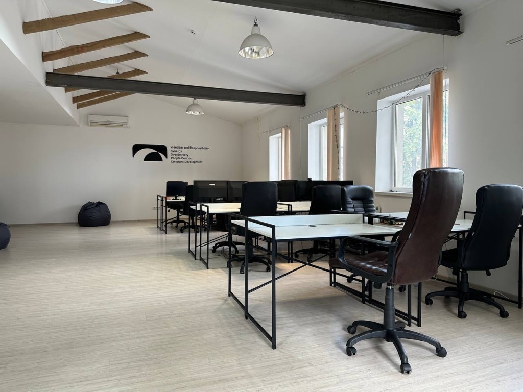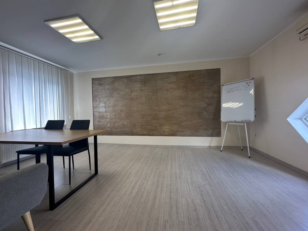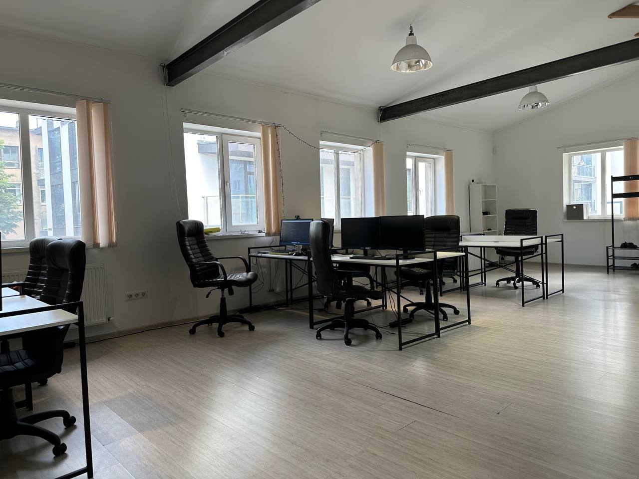 Характеристики офісу: - Загальна площа: 140 м² - Переговорна кімната: 15 м² - Основна кімната (open space): 75 м² - Кухня та санвузли: в наявності - Сучасний ремонт: виконаний