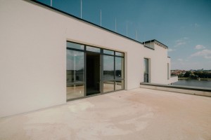 Характеристики квартири: - Планування: дві окремі кімнати і кухня-студія, тераса та експлуатований дах -100 метрів над квартирою. - Площа: 101 м² - Поверх: верхній (8-й) - Тераса: простора, з видом на південь та озеро - Дах: власний експлуатований дах площею 100 м², невід’ємна частина права власності на квартиру