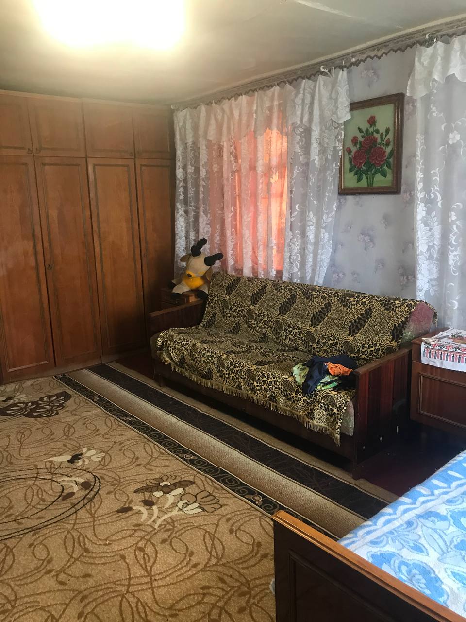 Будинок глиняний обкладений цеглою. Загальна площа 55м2; житлова 44м2.