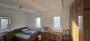 Продається 2/3 житлового будинку 10км від Житомира, на початку с.Садки, Житомирського району. Загальна площа 66м.кв., 2 земельні ділянки 7,5+24,2 сотки приватизованої землі. Нова узаконена прибудова коридор-4м.кв., санвузол-5,6м.кв. (залишилось тільки встановити сантехніку), кухня-15,3м.кв., гостьова 12,3м.кв., та 2 кімнати в дерев'яній частині 13+16м.кв.. Вода заведена в будинок, є криниця, вигрібна яма, світло 3 фази, поряд газ, грубки. В будинку зроблений ремонт, залишаються кухонні меблі. Окреме велике подвір'я, погріб, капітальний сарай на 2 секції, асфальтований під'їзд. Поряд проходить автобус, до АТБ 5 хвилин пішки. Документи готові до оформлення.