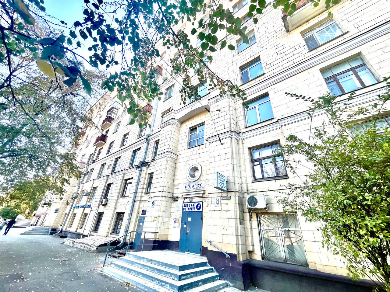 Загальна площа - 84,3 кв.м: ізольована кухня - 10,4 кв.м, три ізольовані кімнати, роздільний санвузол, балкон (виходе у двір).